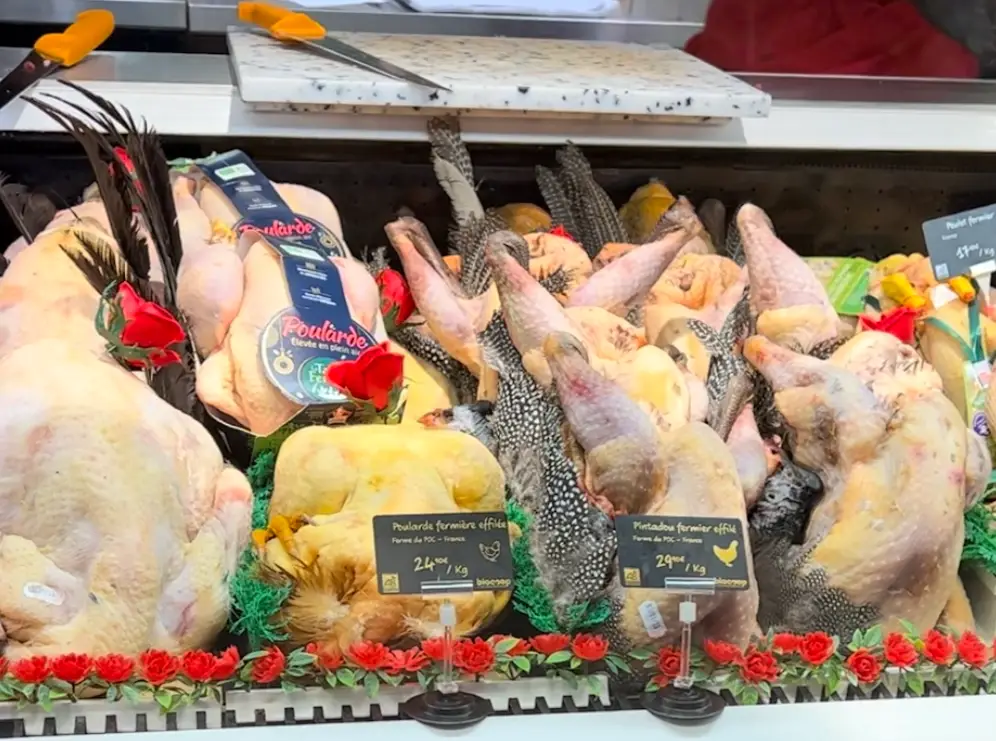 Une alimentation animale 100 % bio (sans OGM, ni produits phytosanitaires) pour les viandes de poulet jaune et de ruminants contre 95 % pour le reste de l'offre "viandes bio"